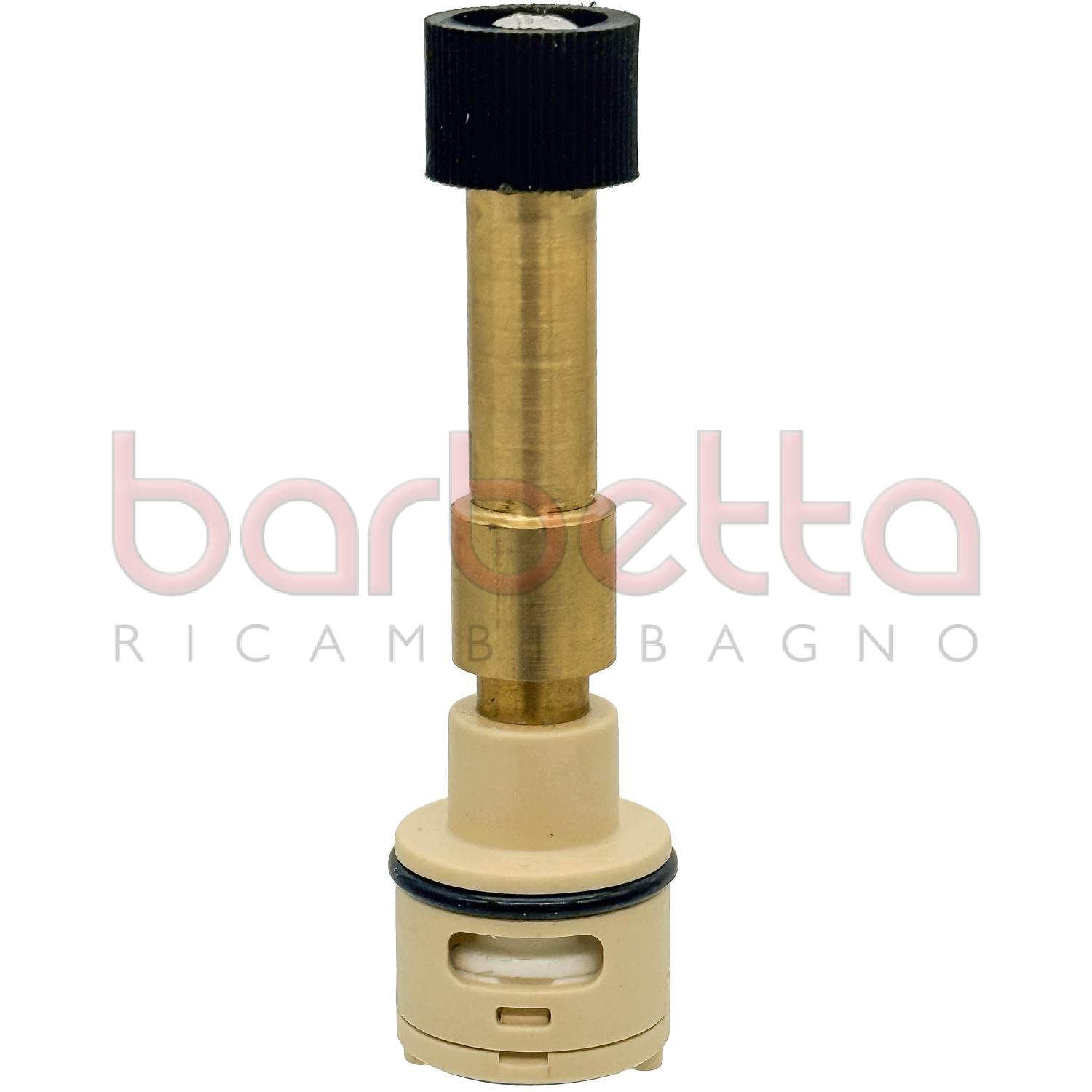 Cartuccia di tipo deviatrice per incassi doccia Ponsi Rubinetterie. Cartuccia a 2 uscite, con due perni inferiori di fissaggio e diametro cartuccia mm.22. Maniglietta in plastica nera già installata.