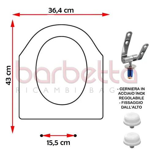 Sedile Copriwater compatibile per i modelli DOLOMITE modello ZAGARA MB colore bianco classico.