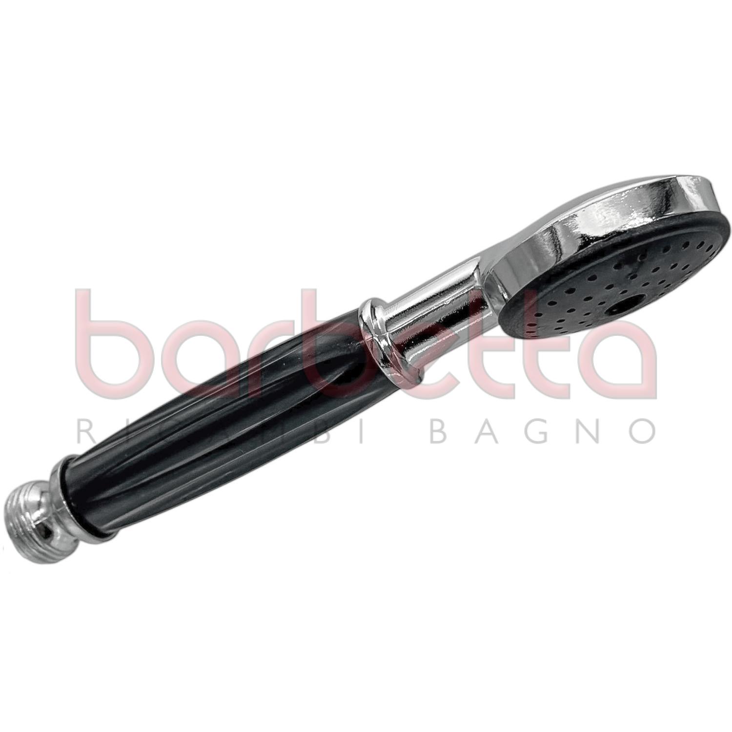 Doccetta cromata con attacco da 1/2" dritto, e manico con colore NERO. Doccetta con filtro in plastica.