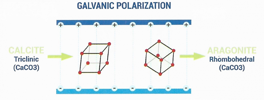 L’acqua presente nelle tubazioni entra direttamente a contatto con IPS e tramite gli elettrodi in esso contenuti genera un campo di forza tale da influenzare la forma dei sali presenti nell’acqua e modificarne il loro reticolo cristallino. In questo modo i sali cambiano la loro struttura fisica, ad esempio la calcite (CaCo3) si trasforma in una polvere sottile chiamata aragonite (CaCo3), ma la loro composizione chimica rimane inalterata.