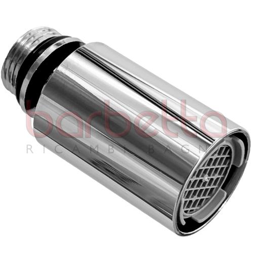 Aeratore a snodo con filetto maschio da 12x1 e o-ring di tenuta a battuta. In metallo in finitura cromo lucida. Aeratore di tipo cachè incluso.