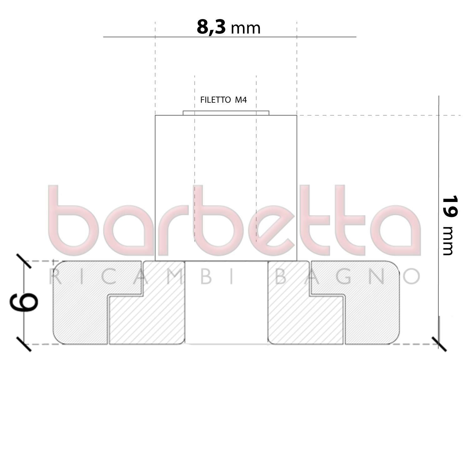 Cuscinetti in ottone con ruota coperta in plastica todina per cabina box doccia con foro.