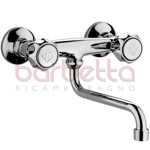 Gruppo lavello a muro con canna orientabile ad "S" diametro 16x160mm, completo di rompigetto M22X1 e set di 2 eccentrici 1/2" x 3/4"G e rosoni.
