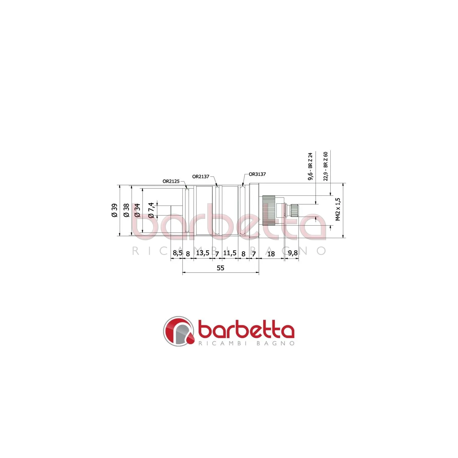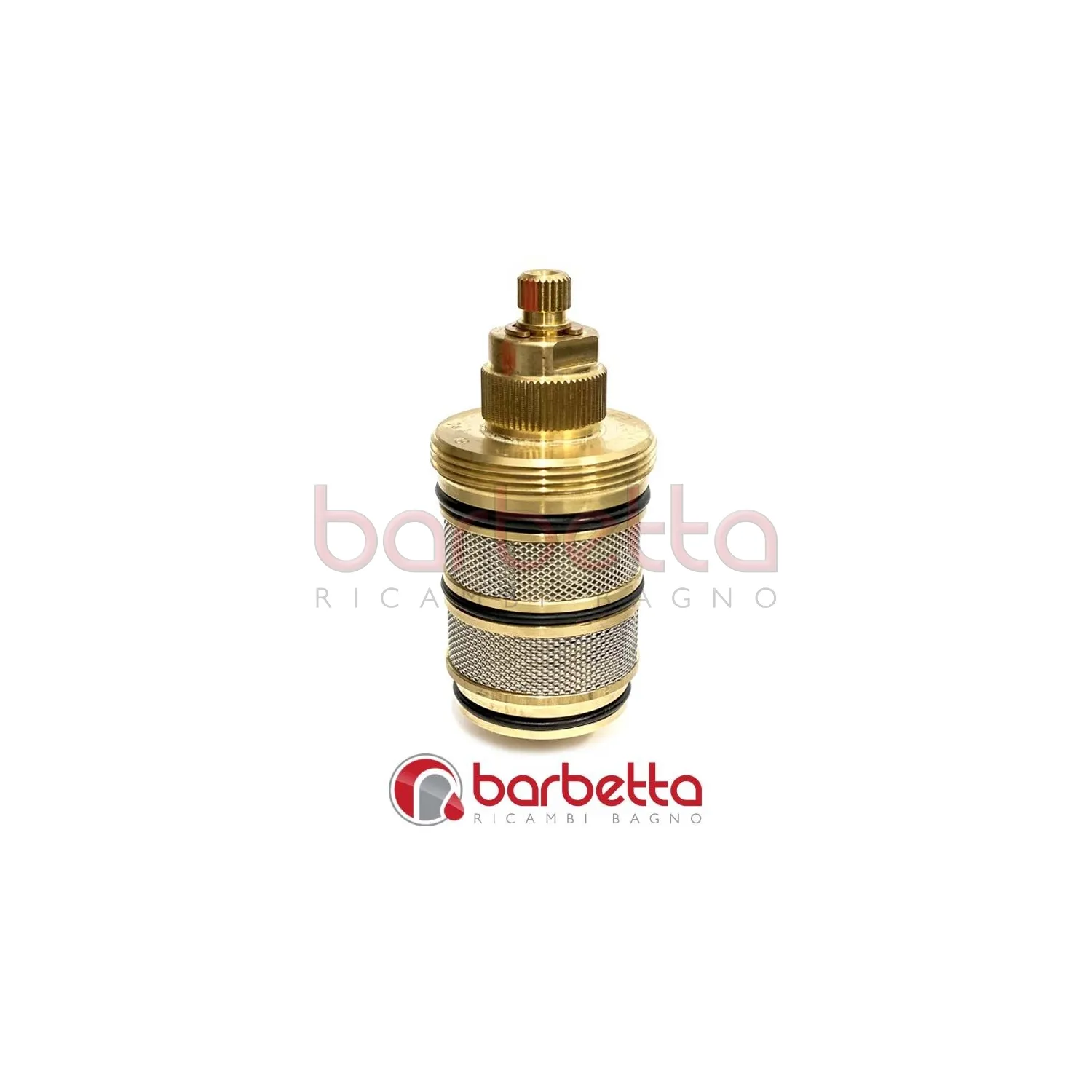 Cartuccia termostatica con filetto superiore di fissaggio e testa con corona filettata.